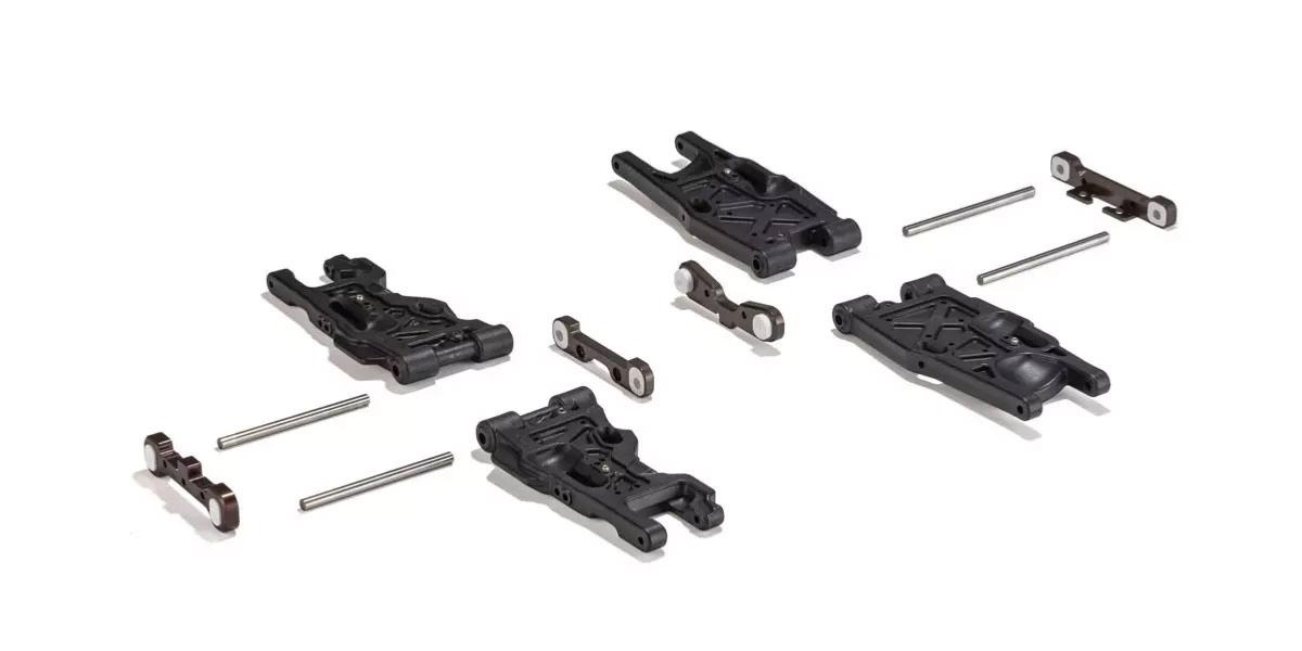 Les amortisseurs à huile avant et arrière sont équipés d'une membrane de série pour un fonctionnement fluide et stable. Les supports d'amortisseurs avant et arrière sont fabriqués en duralumin 7075haute rigidité. Le support d'amortisseur arrière est léger. L'épaisseur des supports avant et arrière est de 5 mm et celle des supports arrière de 4 mm. De plus, les vis de fixation des supports sont passées de 4 mm à 3 mm.