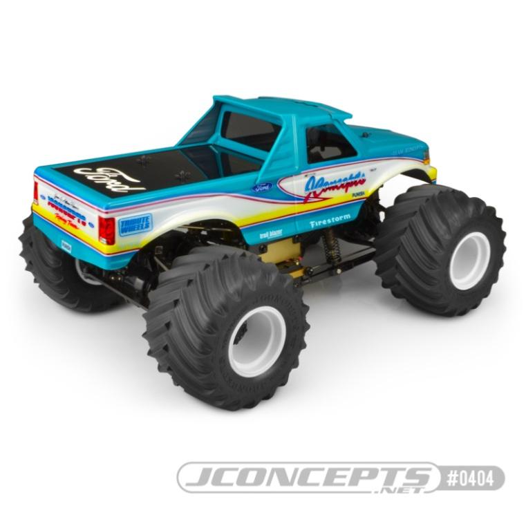 Au milieu des années 1990, la compétition de monster trucks grandeur nature était à son apogée. Jamais autant d'écuries sponsorisées par l'usine n'avaient concouru pour les championnats tant convoités. Les carrosseries Ford ont toujours été couronnées de succès, mais jamais un style n'avait été aussi dominant. La carrosserie du FordF-250 de 1993 était la référence et le summum en termes d'esthétique, de popularité et de performances à cette époque faste des courses de monster trucks. Jamais ce style n'avait été disponible pour les courses de monster trucks à l'échelle 1/10,jusqu'à ce que JConcepts s'y intéresse.