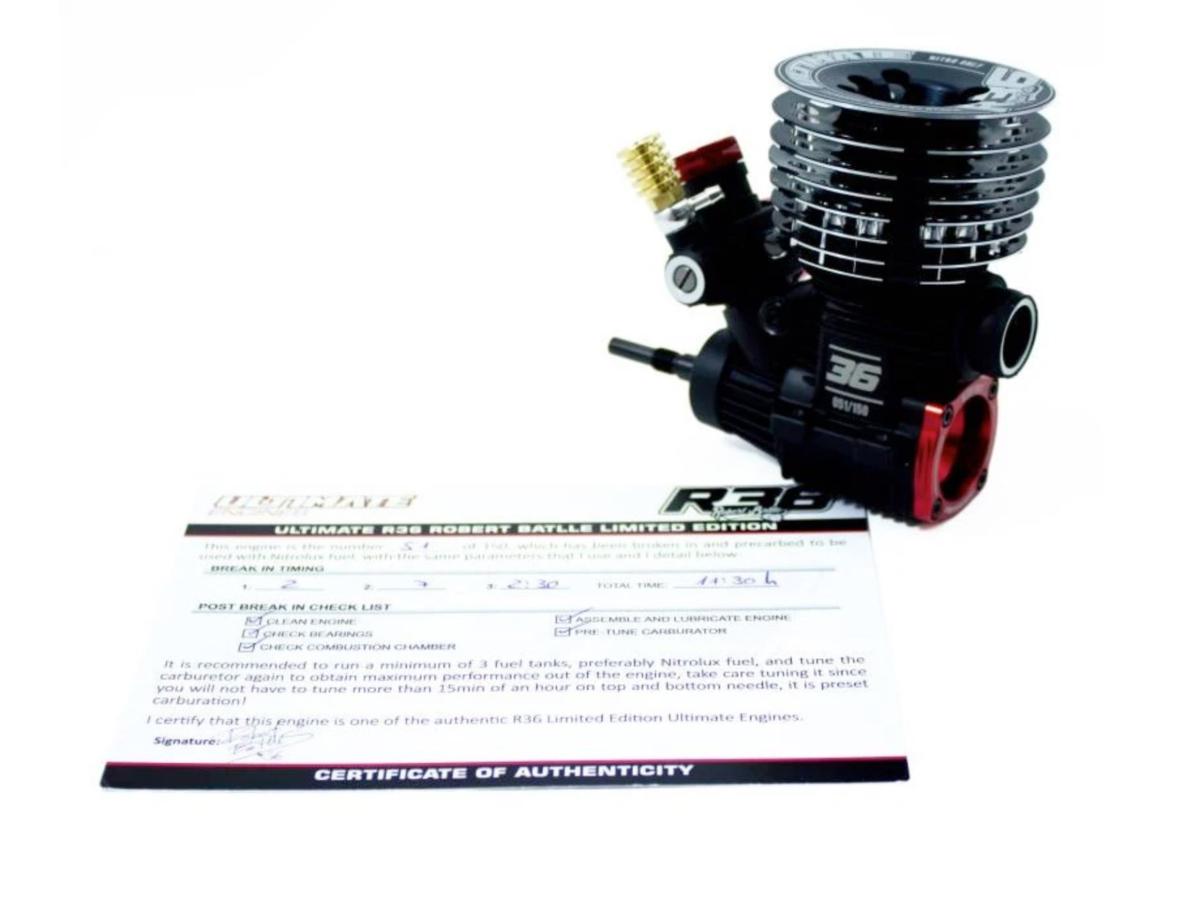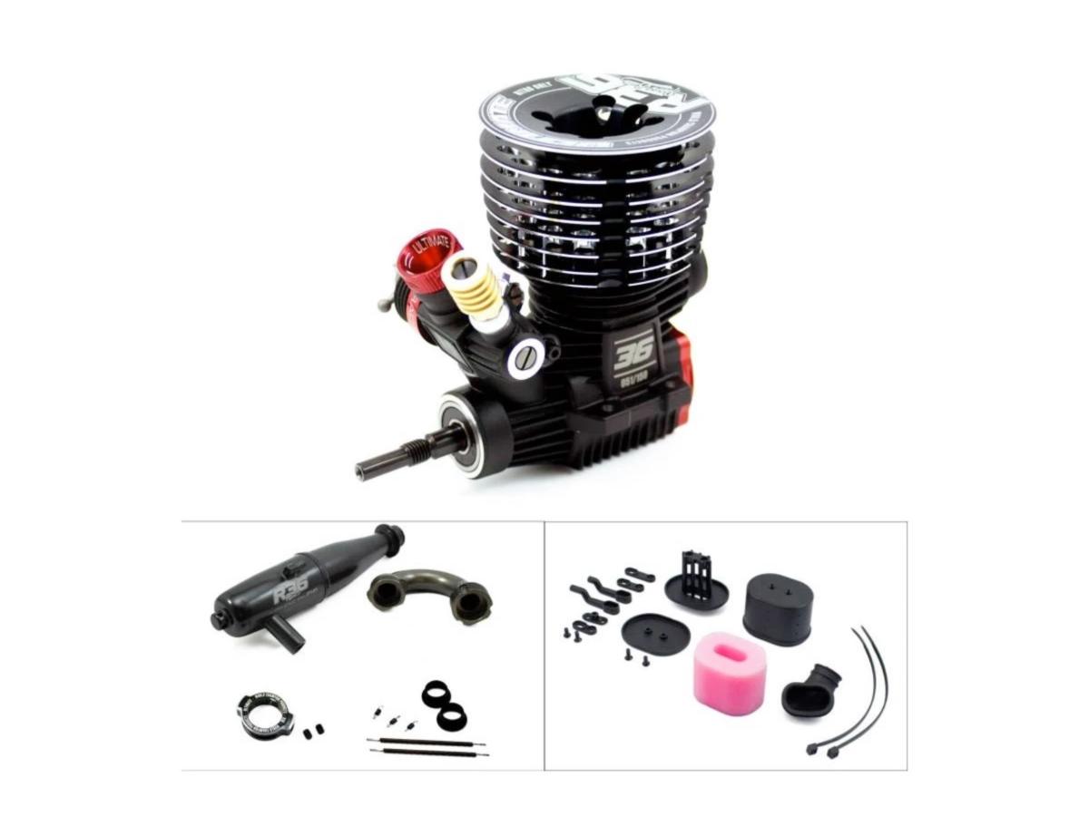 Fabriqué par le prestigieux constructeur O.S. Engines, le R36 est basé sur le Speed ​​B21 à course carrée, une évolution du précédent MXS avec des améliorations clés : nouveau calage de l'admission et de l'échappement, plaque arrière redessinée et carter optimisé.