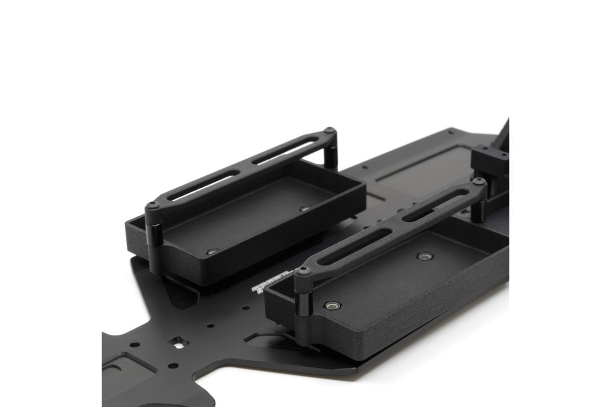 -Nouveaux plateaux lipo pour batteries 2S Shorty avec deux positions de montage sur le châssis : un vers l'avant pour une meilleure précision dans les courbes et un vers l'arrière pour une meilleure stabilité.