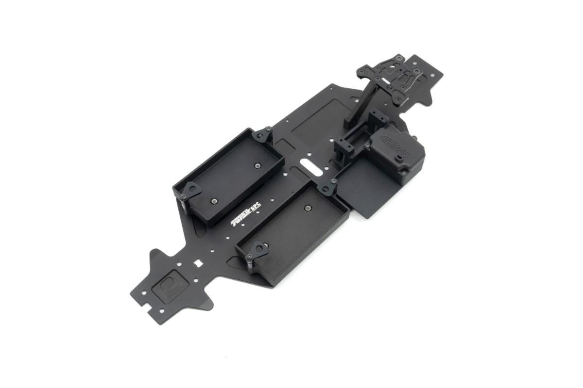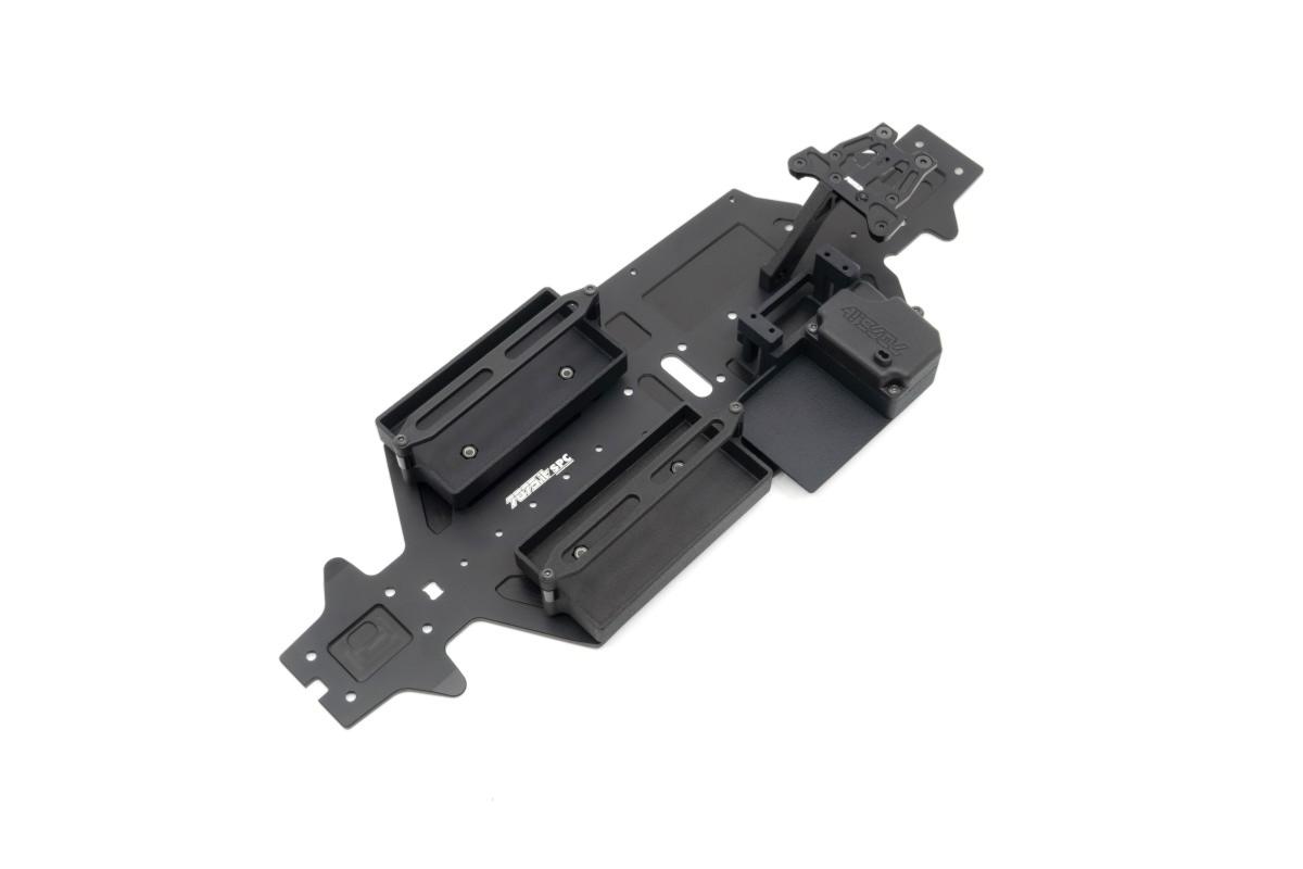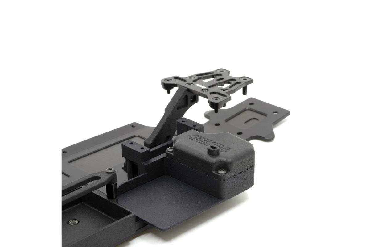 -Nouvelle platine récepteur/contrôleur/servo en plastique imprimé en 3D d'une seule pièce pour un poids équilibré et une maintenance simplifiée : toute l'électronique est démontable avec seulement 4 vis ! La platine est fournie avec des cales en aluminium 7075 anodisé dur noir, à utiliser si nécessaire pour le montage du servo de direction.