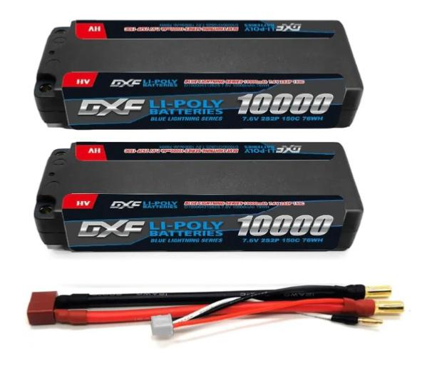 PACK 2x Lipo Batterie 2S 7.6V 10000mAh 150C Blue 5mm avec cordon DEAN DXF-POWER