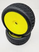 Pneus 1/8e Truggy Frontier Evo montés-collés sur jantes jaunes (2) VP-PRO