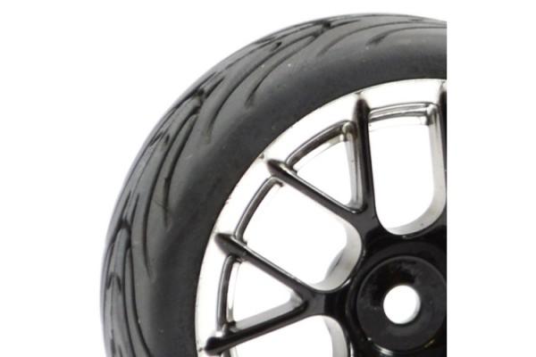 Pneus caoutchouc piste type loisir montés sur jantes 14 bâtons noir/chrome (4) FASTRAX